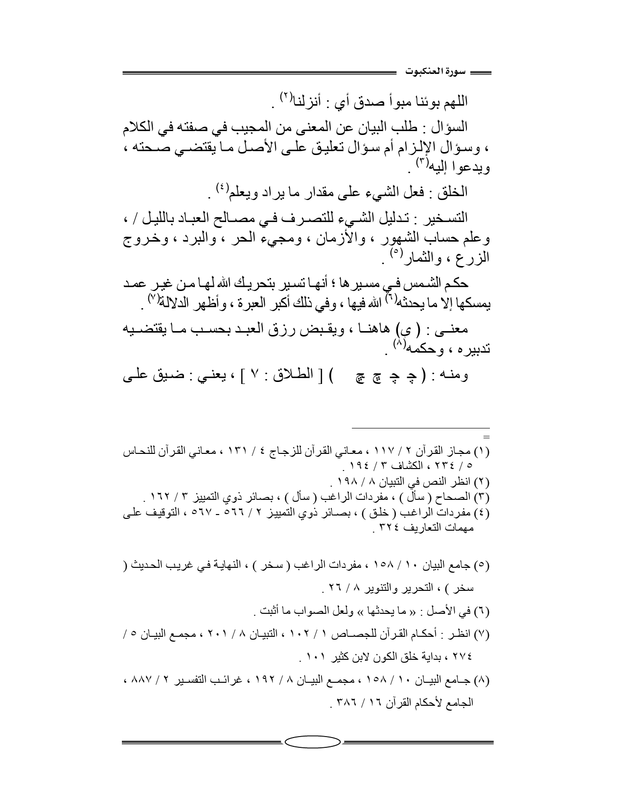 وعلم حساب الشهور، والأزمان، ومجيء الحر، والبرد، وخروج