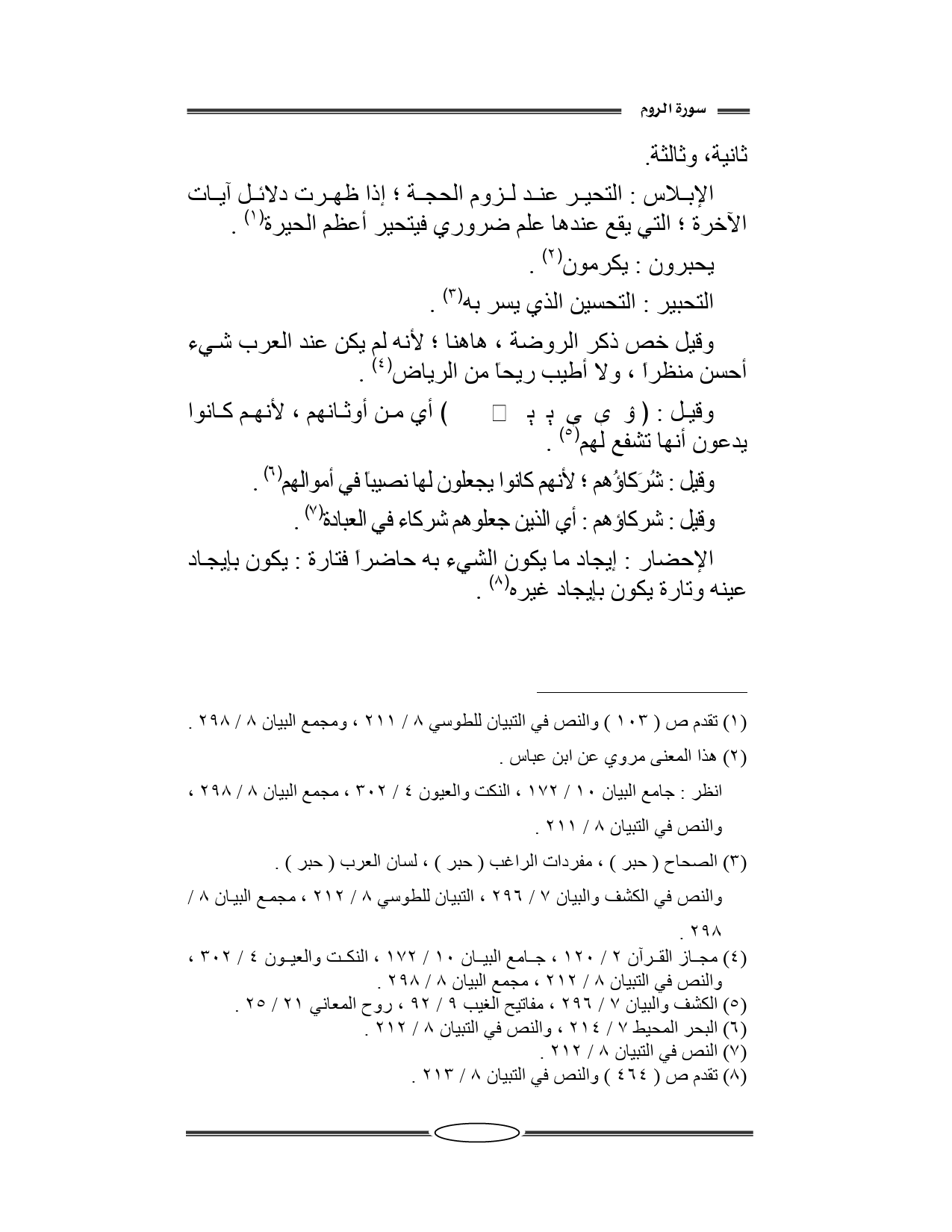 وقيل خص ذكر الروضة، هاهنا؛ لأنه لم يكن عند العرب شيء