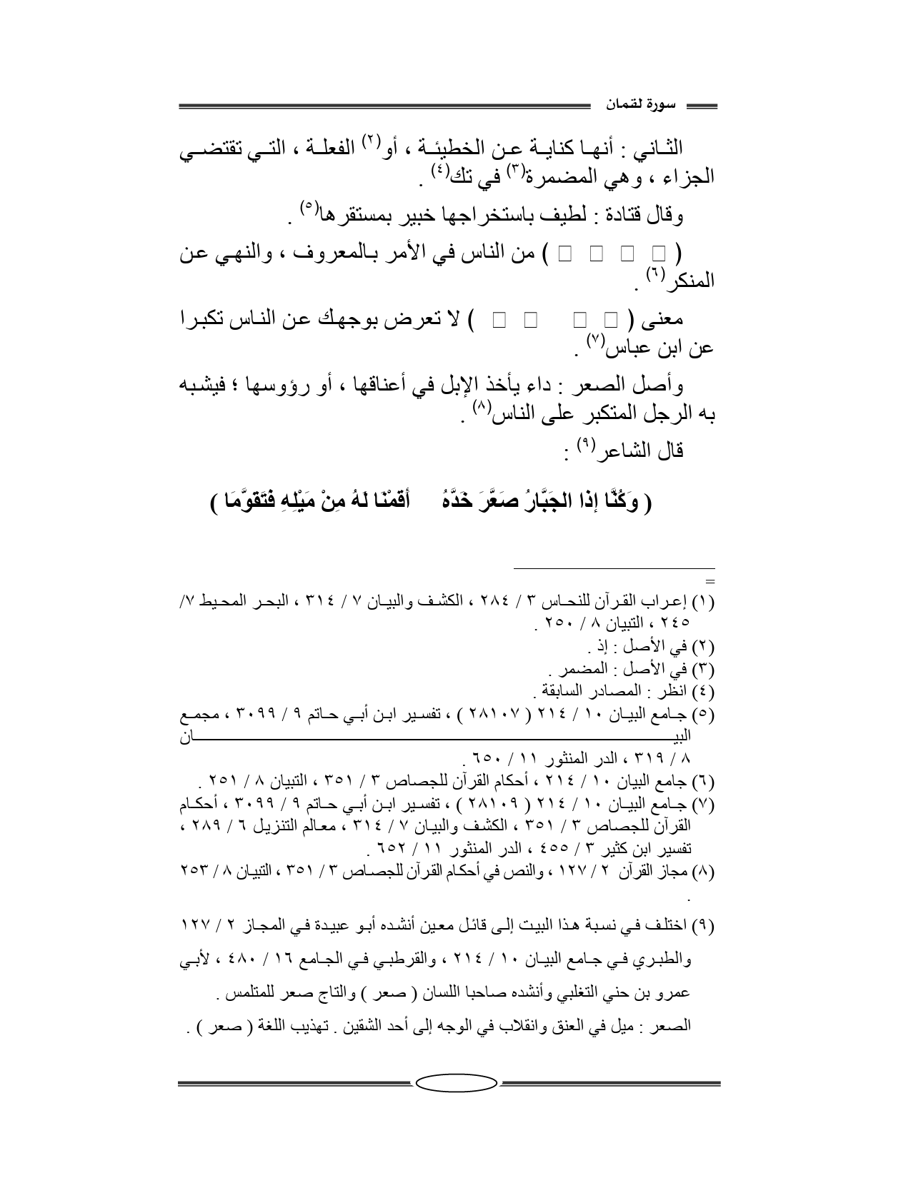 معنى {وَلَا تُصَعِّرْ خَدَّكَ لِلنَّاسِ}