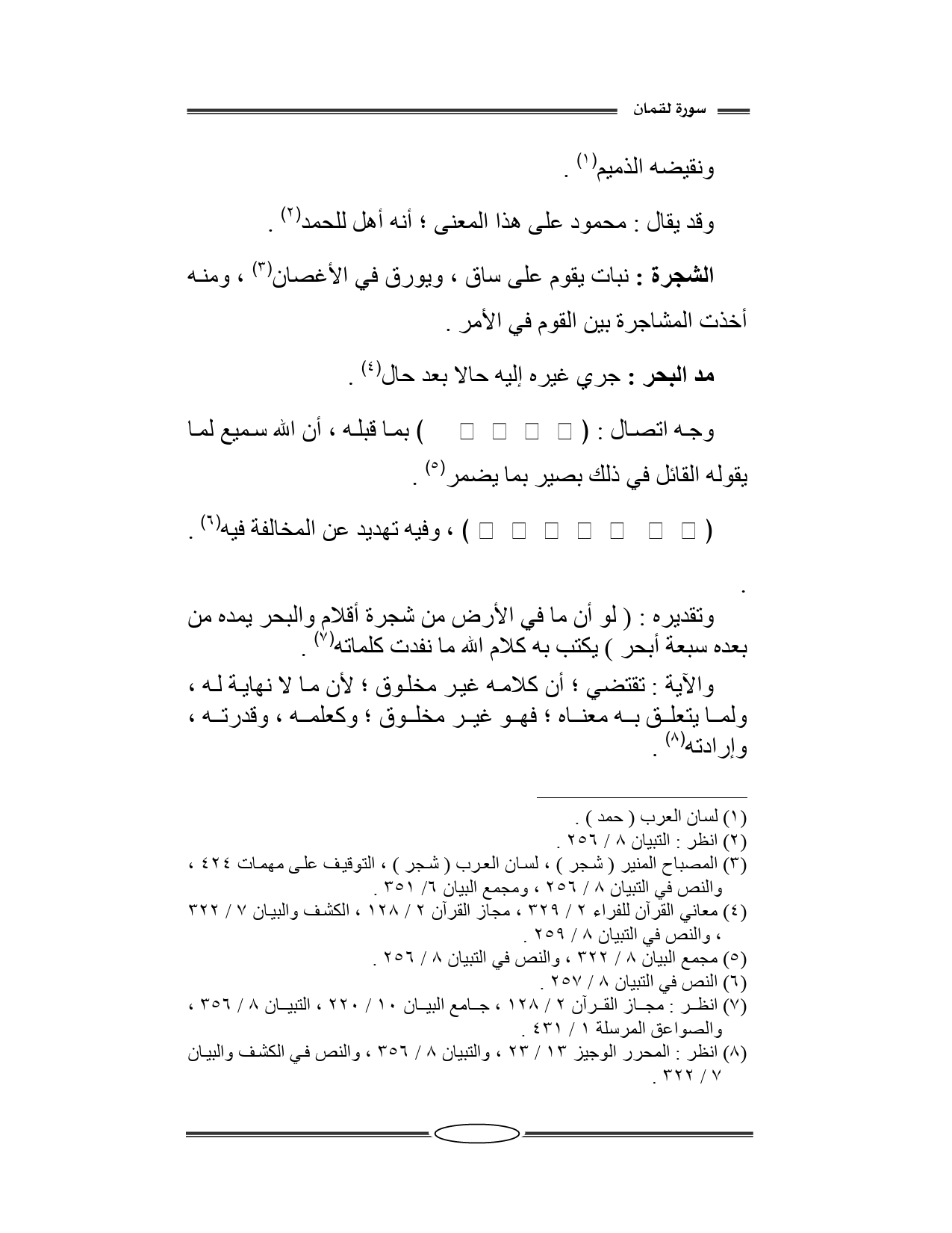 بعده سبعة أبحر) يكتب به كلام الله ما نفدت كلماته.