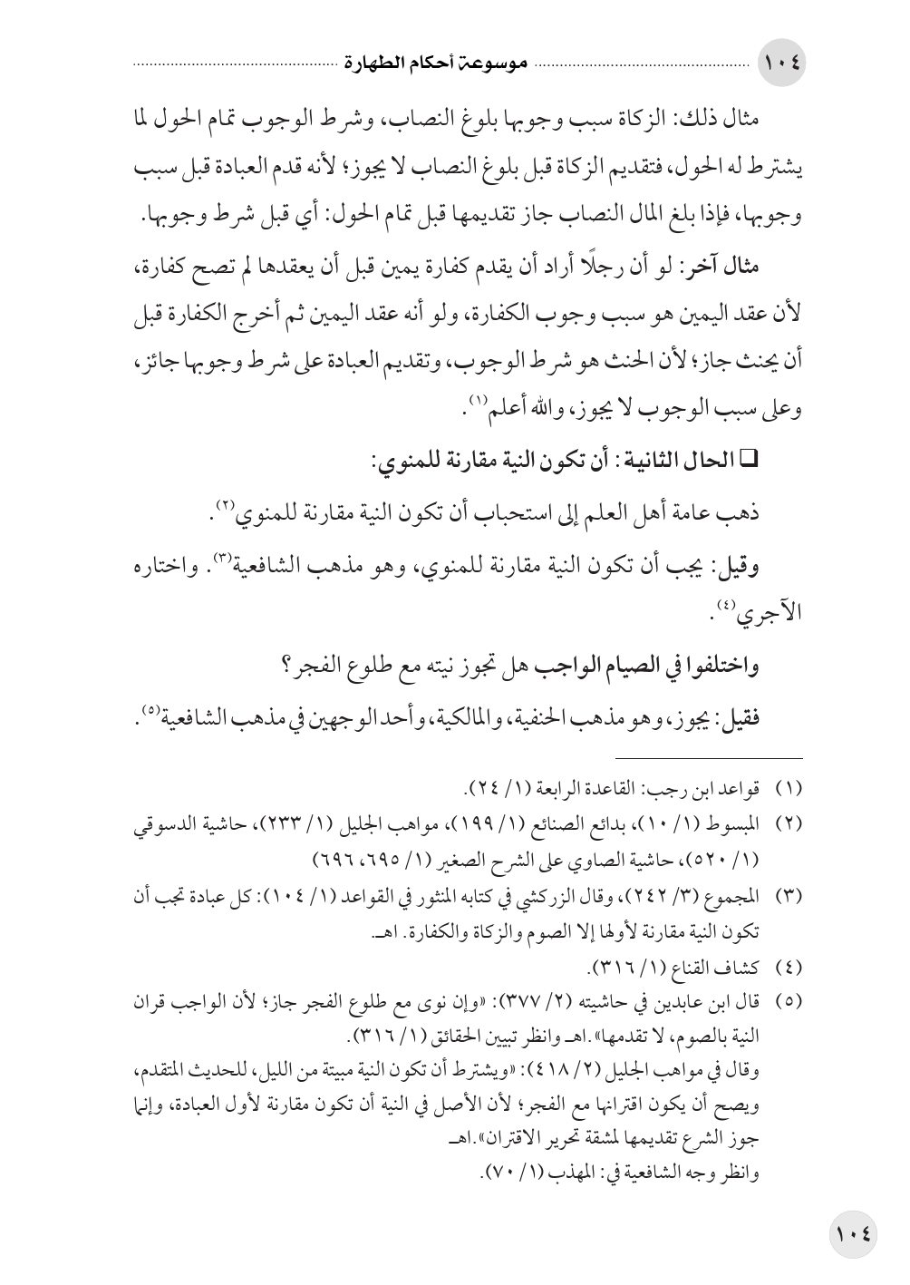 (¬٣) المجموع (٣/ ٢٤٢)، وقال الزركشي في كتابه المنثور في القواعد (١/ ١٠٤): كل عبادة تجب أن تكون النية مقارنة لأولها إلا الصوم والزكاة والكفارة. اهـ.