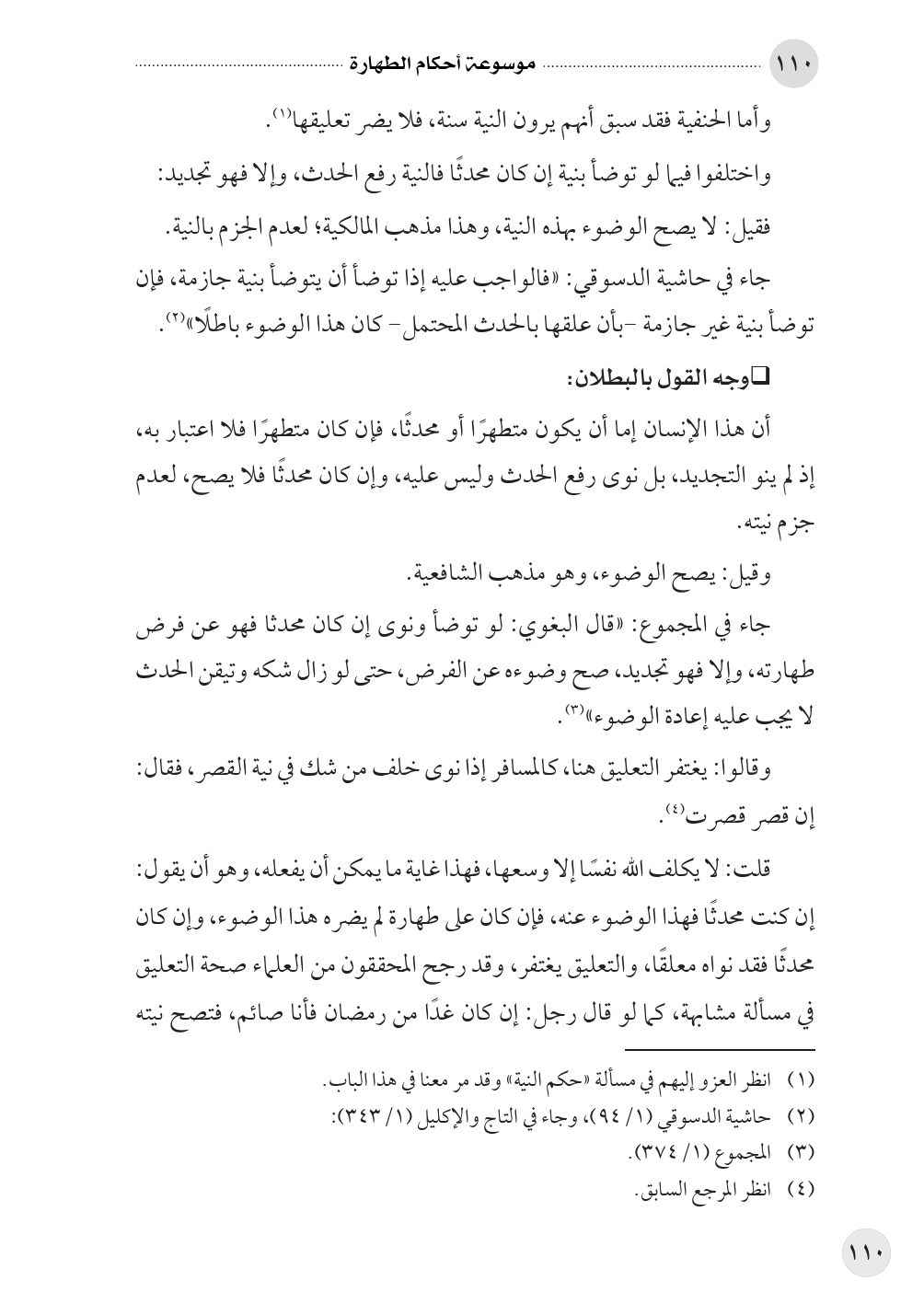 (¬١) انظر العزو إليهم في مسألة «حكم النية» وقد مر معنا في هذا الباب.