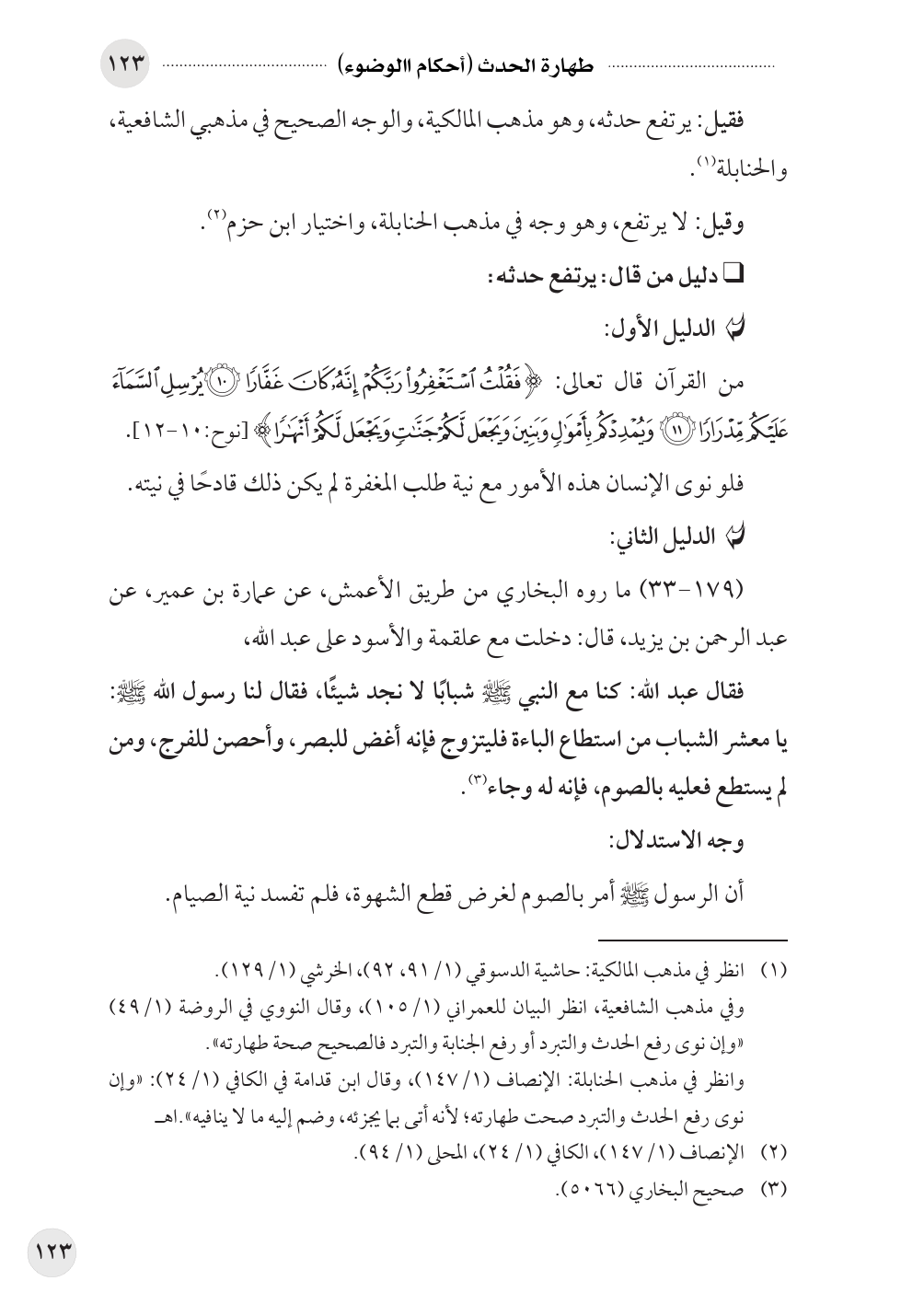 (¬٢) الإنصاف (١/ ١٤٧)، الكافي (١/ ٢٤)، المحلى (١/ ٩٤).