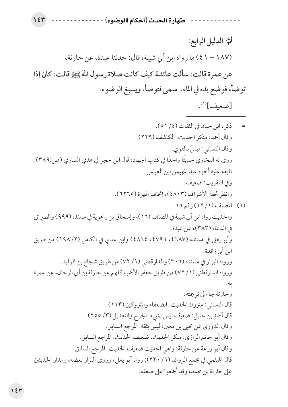 (١٨٧ - ٤١) ما رواه ابن أبي شيبة، قال: حدثنا عبدة، عن حارثة،