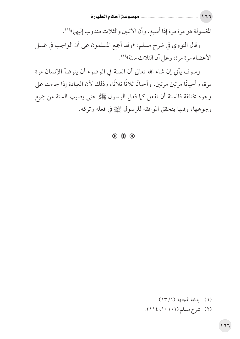 وقال النووي في شرح مسلم: «وقد أجمع المسلمون على أن الواجب في غسل الأعضاء مرة مرة، وعلى أن الثلاث سنة» (¬٢).