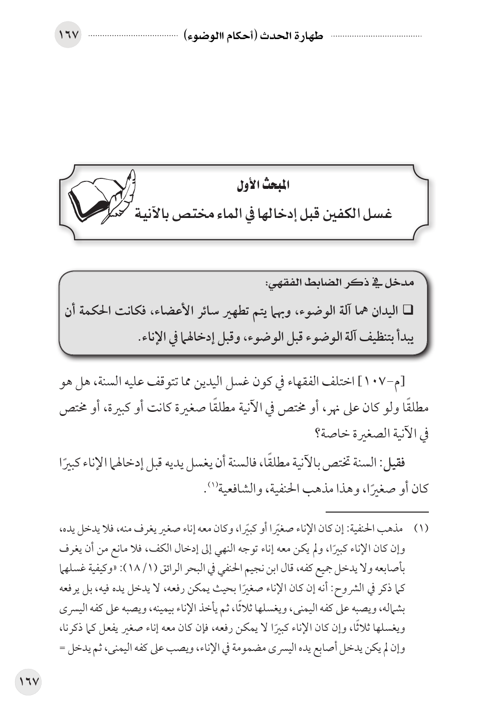 المبحث الأول غسل الكفين قبل إدخالها في الماء مختص بالآنية