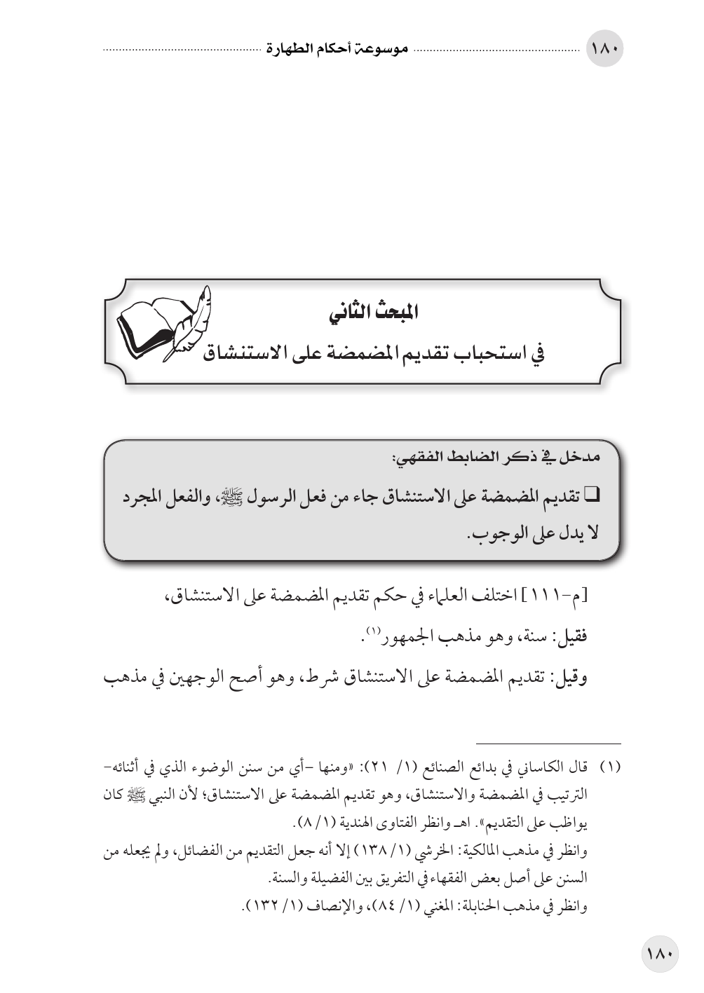 المبحث الثاني في استحباب تقديم المضمضة على الاستنشاق