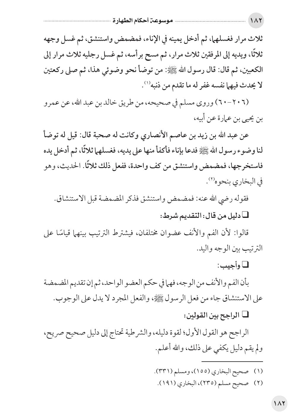 قالوا: لأن الفم والأنف عضوان مختلفان، فيشترط الترتيب بينهما قياسًا على الترتيب بين الوجه واليد.