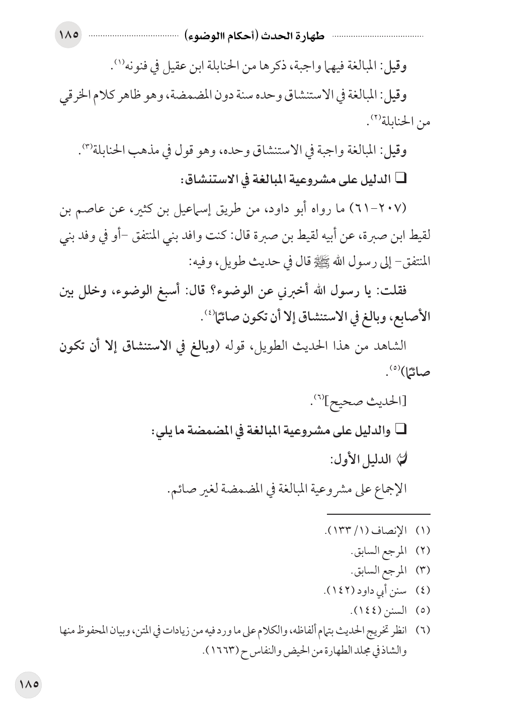 - والدليل على مشروعية المبالغة في المضمضة ما يلي:
