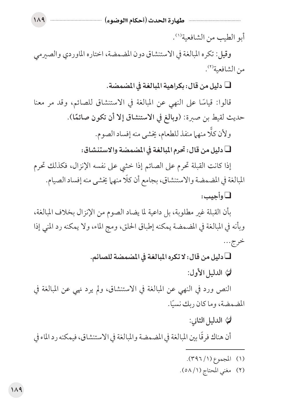 - دليل من قال: بكراهية المبالغة في المضمضة.