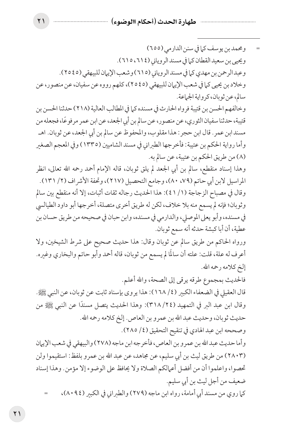 وأما حديث عبد الله بن عمرو بن العاص، فأخرجه ابن ماجه (٢٧٨) والبيهقي في شعب الإيمان (٢٨٠٣) من طريق ليث بن أبي سليم، عن مجاهد، عن عبد الله بن عمرو بلفظ: استقيموا ولن تحصوا، واعلموا أن من أفضل أعمالكم الصلاة ولا يحافظ على الوضوء إلا مؤمن. وهذا إسناد ضعيف من أجل ليث بن أبي سليم.
