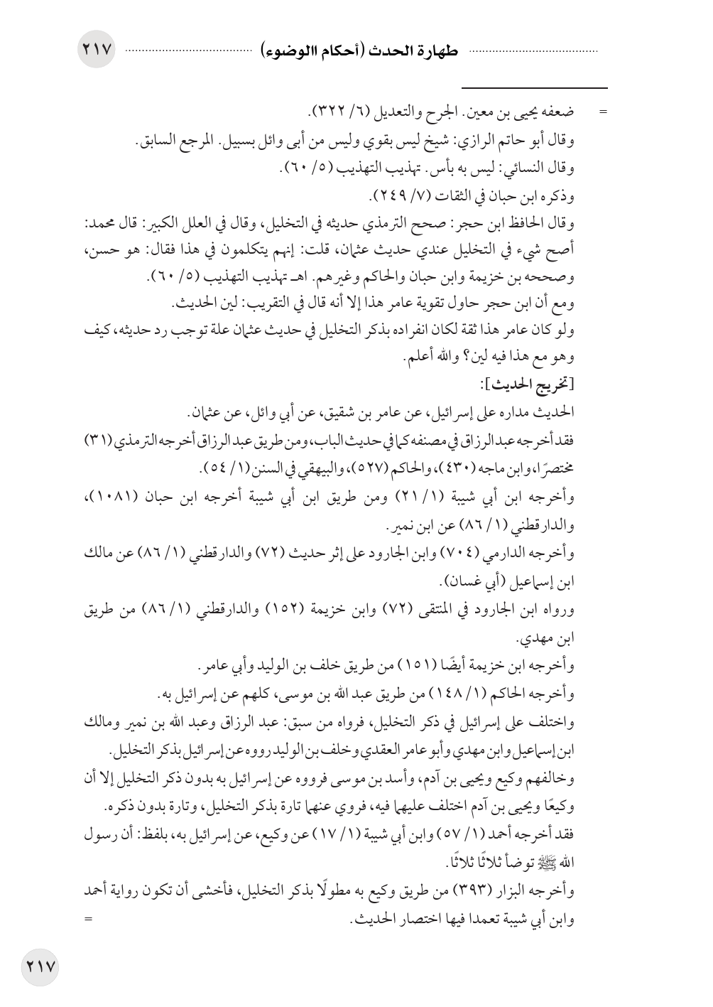 ولو كان عامر هذا ثقة لكان انفراده بذكر التخليل في حديث عثمان علة توجب رد حديثه، كيف وهو مع هذا فيه لين؟ والله أعلم.