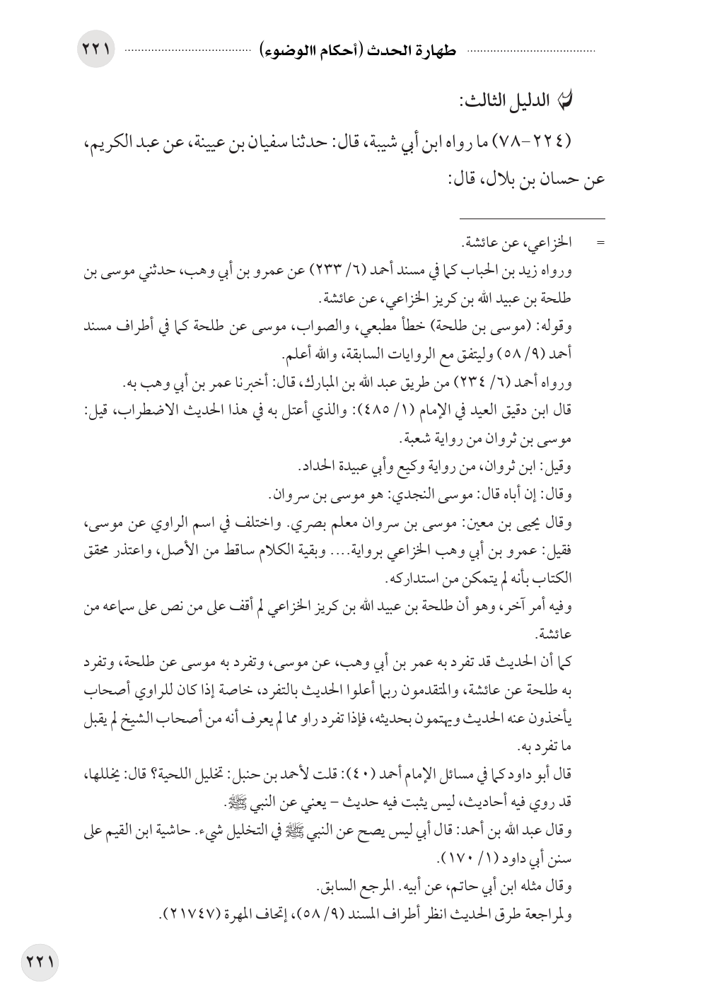 (٢٢٤ - ٧٨) ما رواه ابن أبي شيبة، قال: حدثنا سفيان بن عيينة، عن عبد الكريم، عن حسان بن بلال، قال: