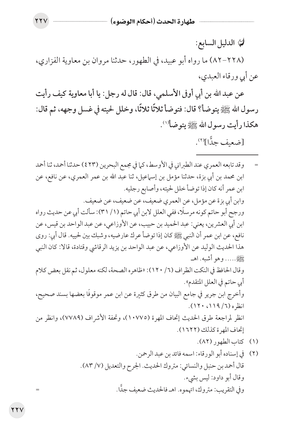 (٢٢٨ - ٨٢) ما رواه أبو عبيد، في الطهور، حدثنا مروان بن معاوية الفزاري، عن أبي ورقاء العبدي،