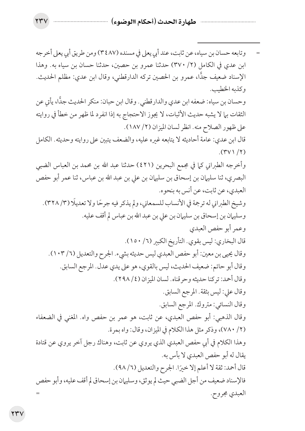 وقال يحيى بن معين: أبو حفص العبدي ليس حديثه بشيء. الجرح والتعديل (٦/ ١٠٣).