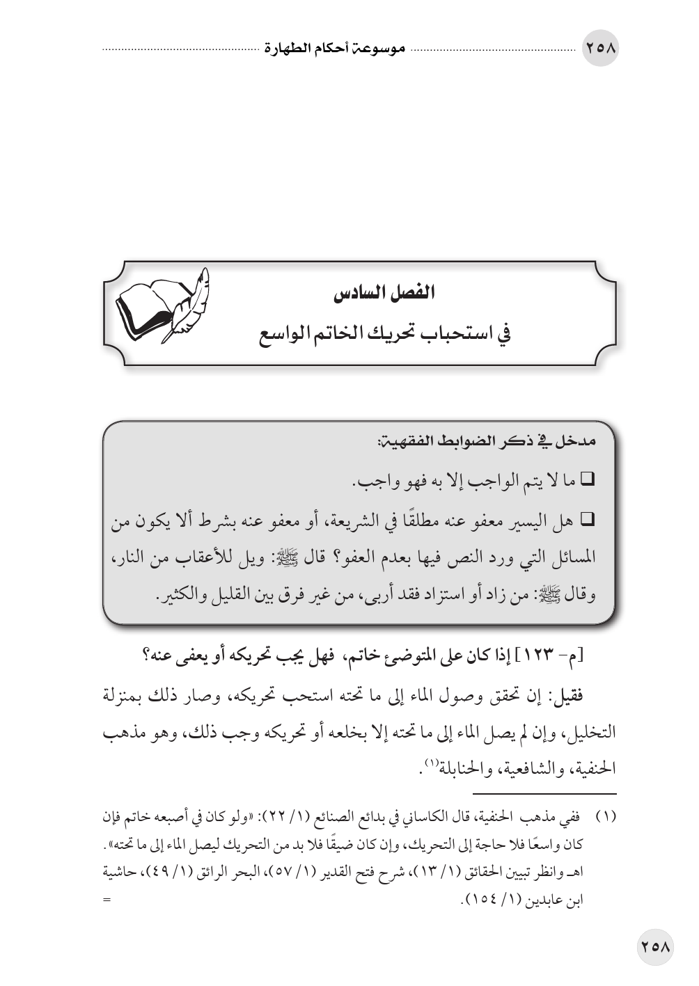 الفصل السادس في استحباب تحريك الخاتم الواسع