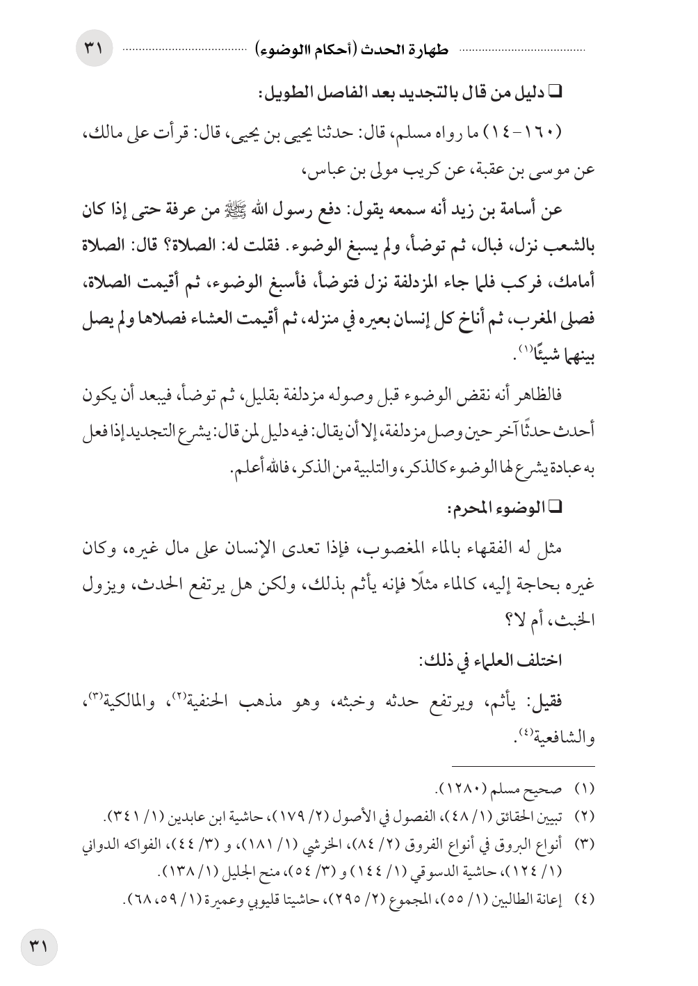 (¬٢) تبيين الحقائق (١/ ٤٨)، الفصول في الأصول (٢/ ١٧٩)، حاشية ابن عابدين (١/ ٣٤١).