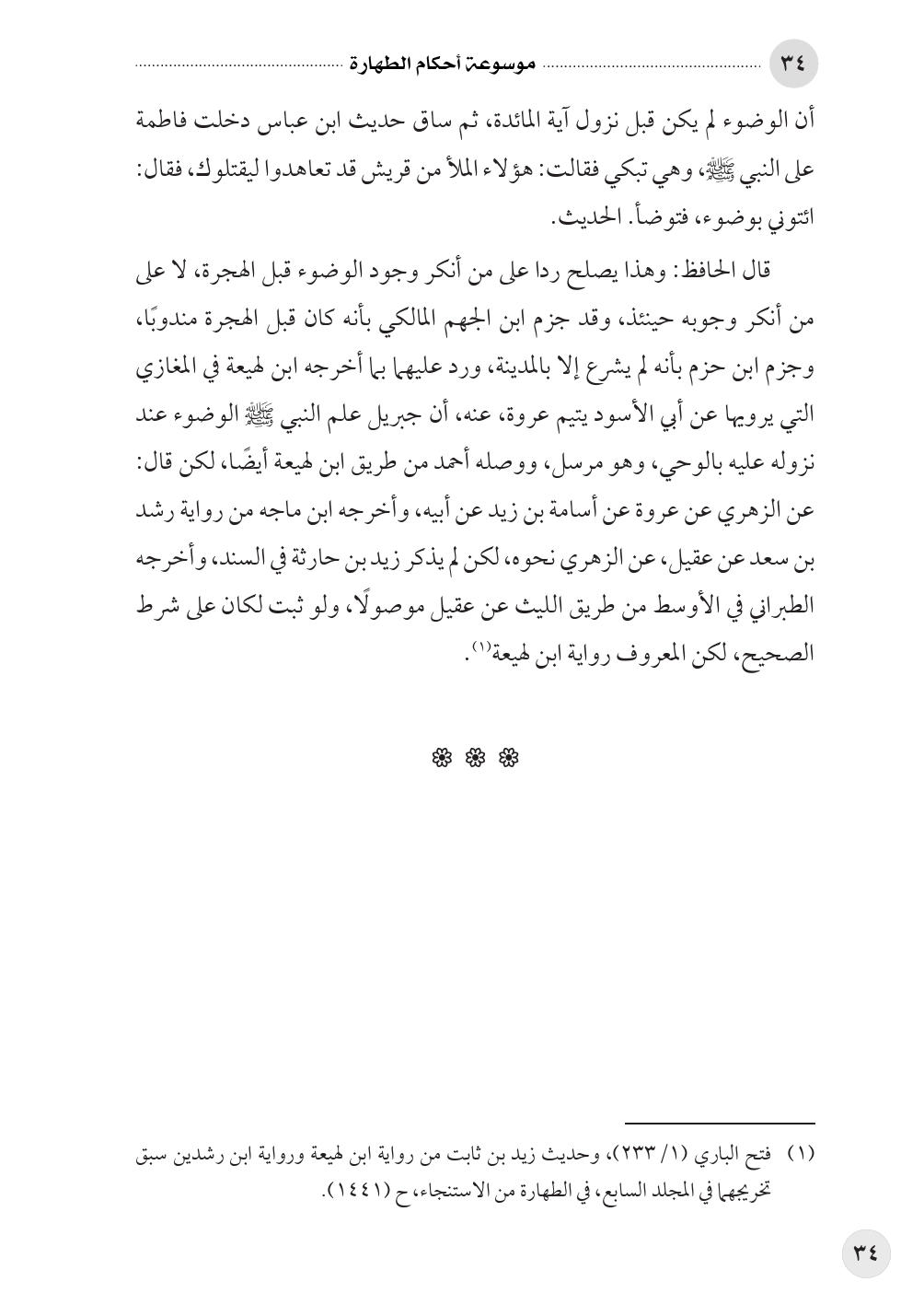 (¬١) فتح الباري (١/ ٢٣٣)، وحديث زيد بن ثابت من رواية ابن لهيعة ورواية ابن رشدين سبق تخريجهما في المجلد السابع، في الطهارة من الاستنجاء، ح (١٤٤١).