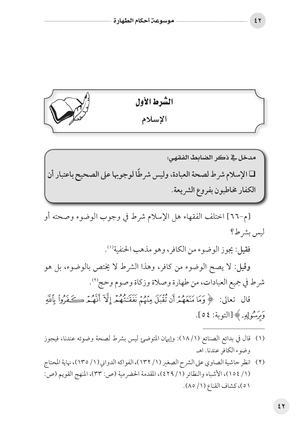 (¬٢) انظر حاشية الصاوي على الشرح الصغير (١/ ١٣٢)، الفواكه الدواني (١/ ١٣٥)، نهاية المحتاج (١/ ١٥٤)، الأشباه والنظائر (١/ ٤٢٩)، المقدمة الحضرمية (ص: ٣٣)، المنهج القويم (ص: ٥١)، كشاف القناع (١/ ٨٥).