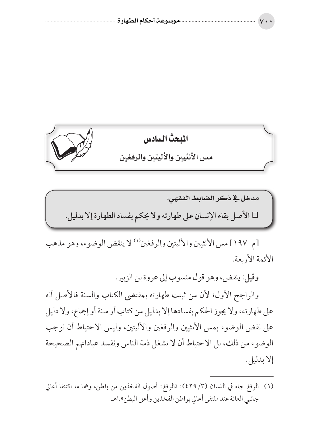 المبحث السادس مس الأنثيين والأليتين والرفغين