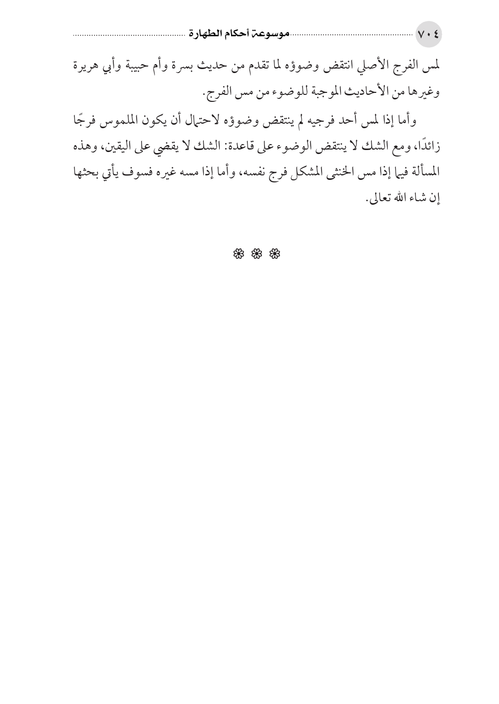 وأما إذا لمس أحد فرجيه لم ينتقض وضوؤه لاحتمال أن يكون الملموس فرجًا زائدًا، ومع الشك لا ينتقض الوضوء على قاعدة: الشك لا يقضي على اليقين، وهذه المسألة فيما إذا مس الخنثى المشكل فرج نفسه، وأما إذا مسه غيره فسوف يأتي بحثها إن شاء الله تعالى.