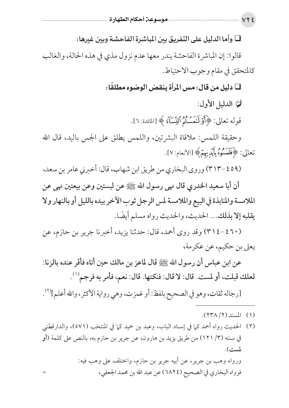 • دليل من قال: مس المرأة ينقض الوضوء مطلقًا: