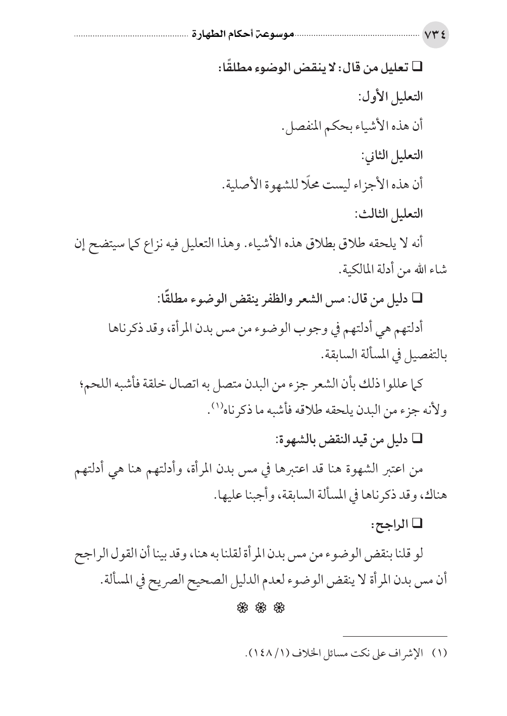 من اعتبر الشهوة هنا قد اعتبرها في مس بدن المرأة، وأدلتهم هنا هي أدلتهم هناك، وقد ذكرناها في المسألة السابقة، وأجبنا عليها.