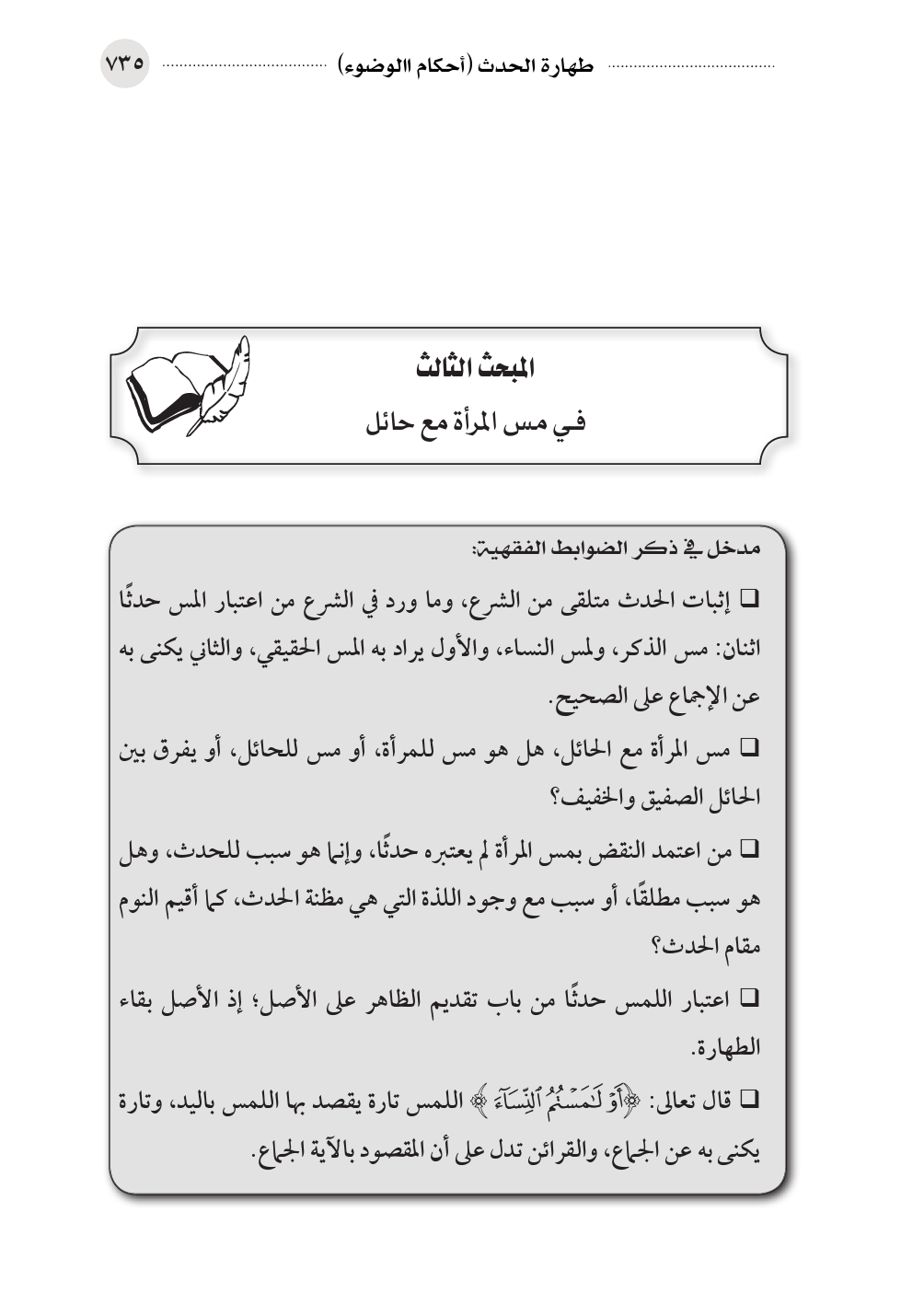 المبحث الثالث في مس المرأة مع حائل