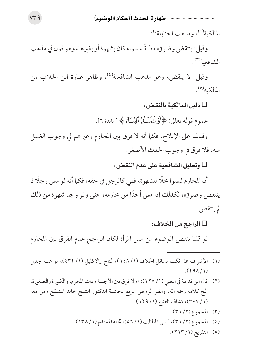 (¬١) الإشراف على نكت مسائل الخلاف (١/ ١٤٨)، التاج والإكليل (١/ ٤٣٢)، مواهب الجليل (١/ ٢٩٨).