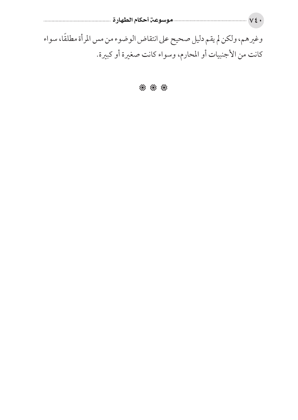 وغيرهم، ولكن لم يقم دليل صحيح على انتقاض الوضوء من مس المرأة مطلقًا، سواء كانت من الأجنبيات أو المحارم، وسواء كانت صغيرة أو كبيرة.