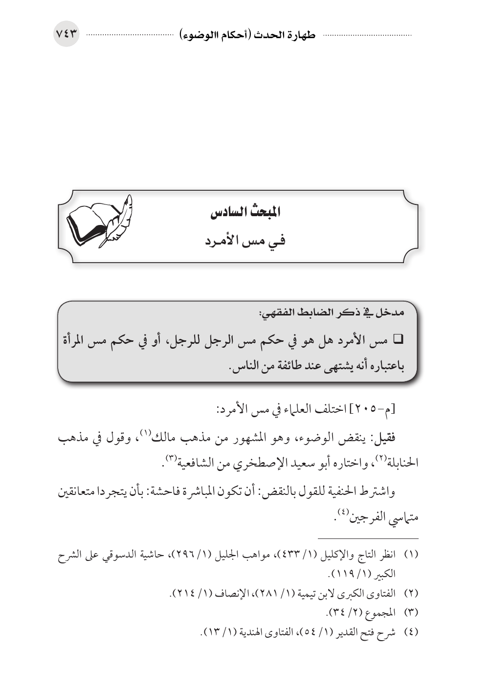 • مس الأمرد هل هو في حكم مس الرجل للرجل، أو في حكم مس المرأة باعتباره أنه يشتهى عند طائفة من الناس.