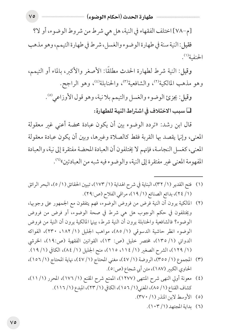 (¬٤) معونة أولي النهى شرح المنتهى (١٢٧٧)، الممتع شرح المقنع (١/ ١٧٦)، المحرر (١/ ١١)، كشاف القناع (١/ ٨٥)، المغني (١/ ١٥٦)، الكافي (١/ ٢٣)، المبدع (١/ ١١٦).