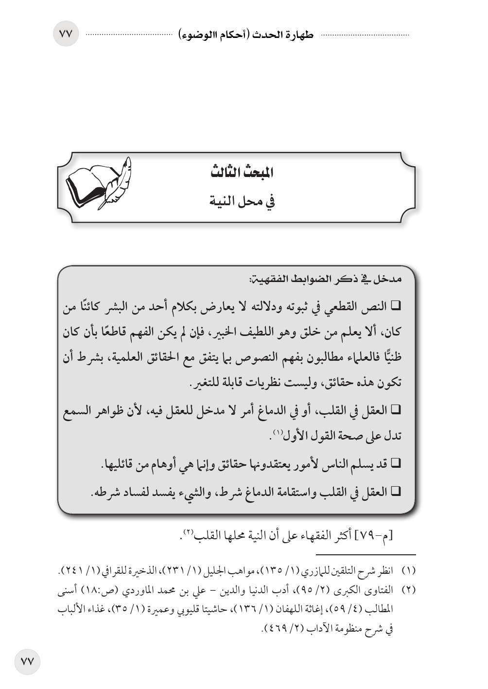 (¬١) انظر شرح التلقين للمازري (١/ ١٣٥)، مواهب الجليل (١/ ٢٣١)، الذخيرة للقرافي (١/ ٢٤١).