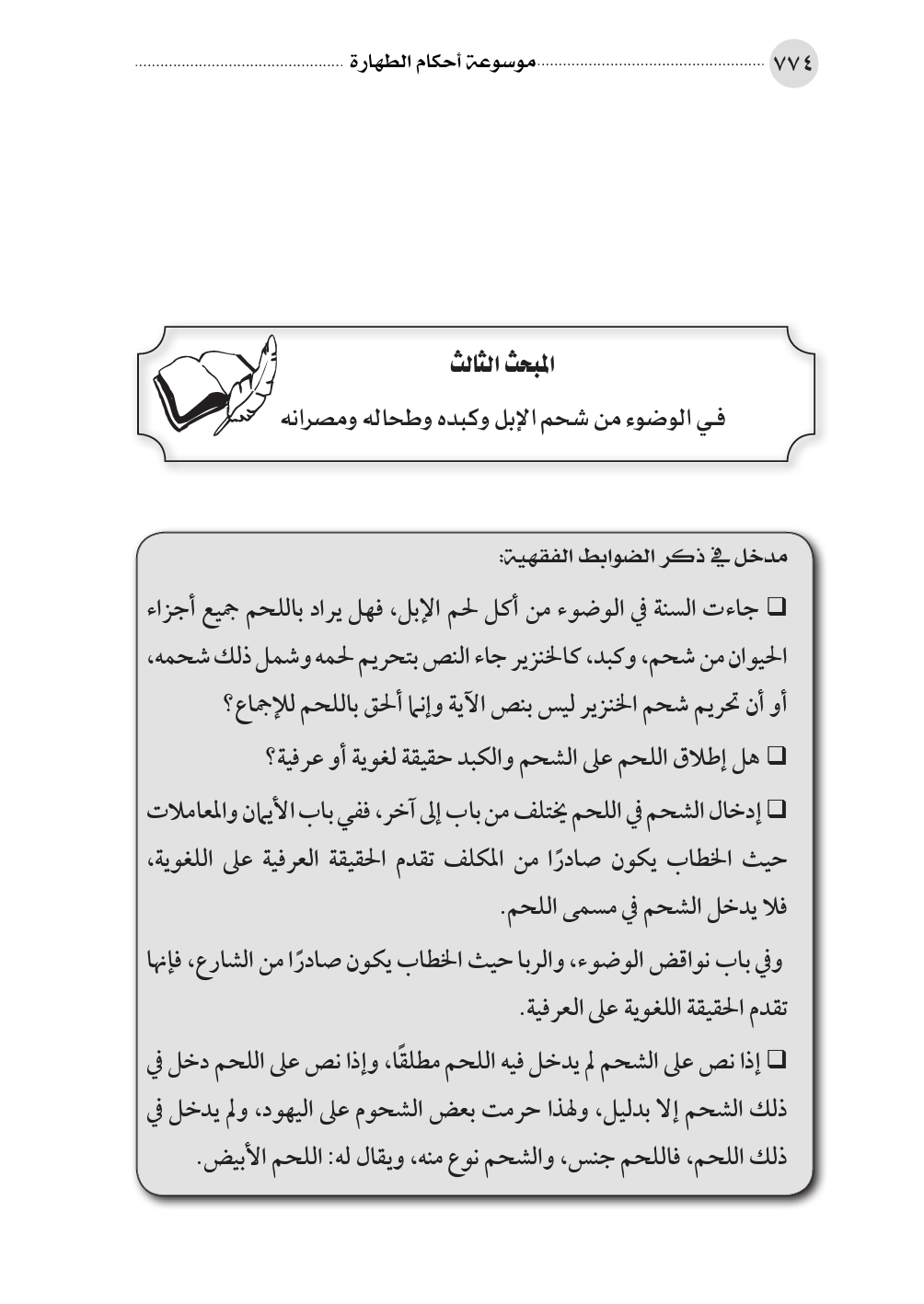 المبحث الثالث في الوضوء من شحم الإبل وكبده وطحاله ومصرانه