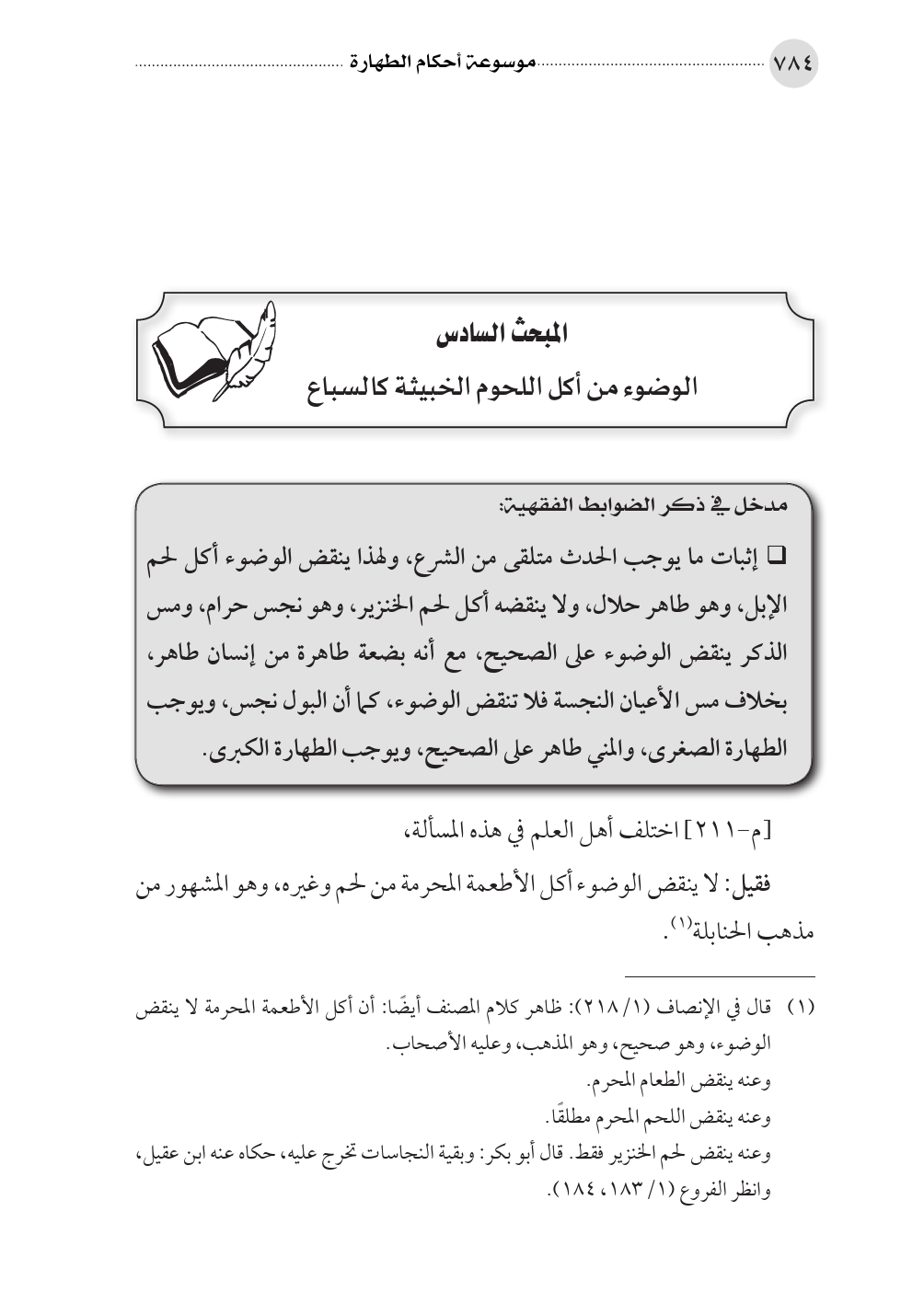 المبحث السادس الوضوء من أكل اللحوم الخبيثة كالسباع