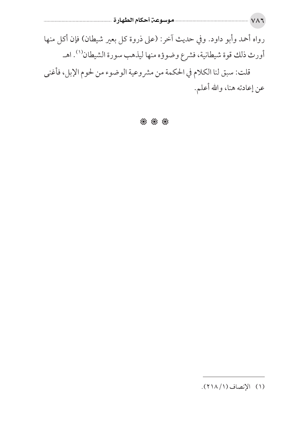 رواه أحمد وأبو داود. وفي حديث آخر: (على ذروة كل بعير شيطان) فإن أكل منها أورث ذلك قوة شيطانية، فشرع وضوؤه منها ليذهب سورة الشيطان (¬١). اهـ