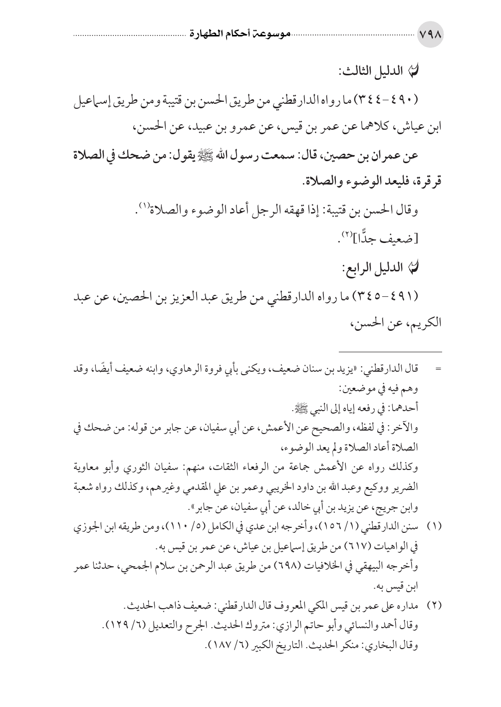 (٤٩٠ - ٣٤٤) ما رواه الدارقطني من طريق الحسن بن قتيبة ومن طريق إسماعيل ابن عياش، كلاهما عن عمر بن قيس، عن عمرو بن عبيد، عن الحسن،