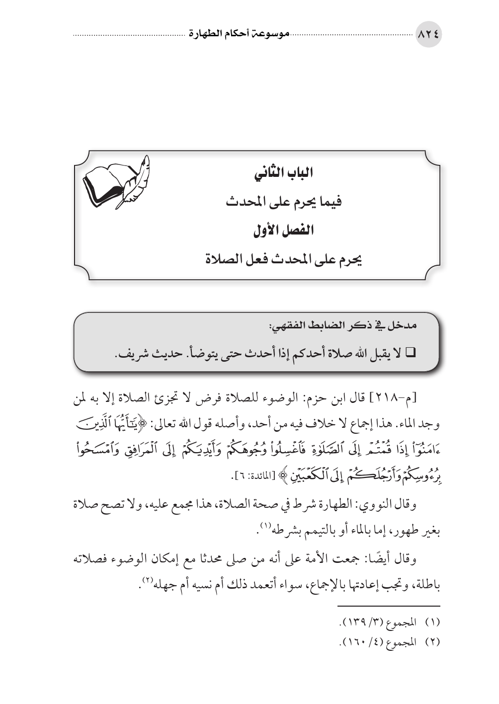 الفصل الأول يحرم على المحدث فعل الصلاة