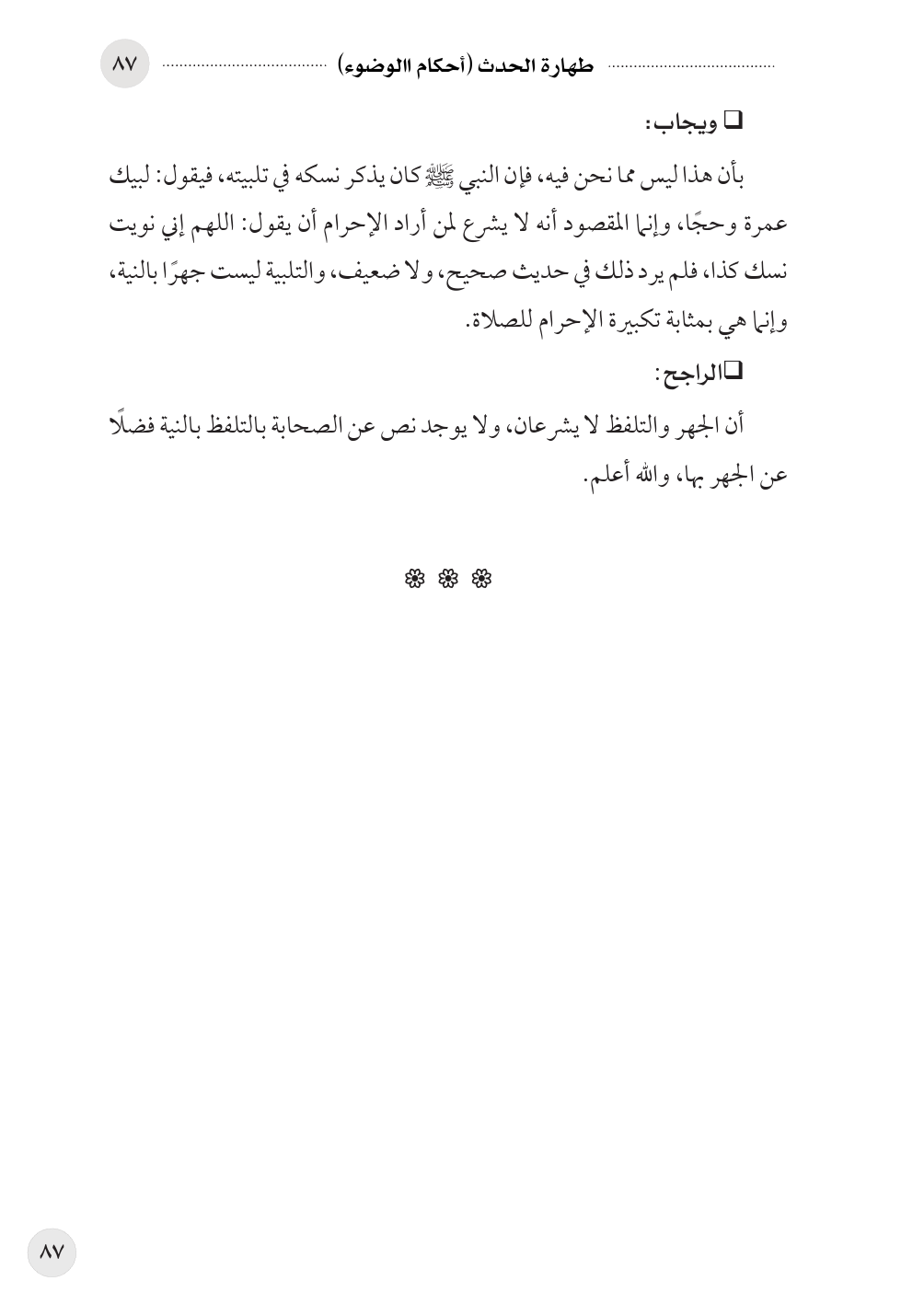 بأن هذا ليس مما نحن فيه، فإن النبي صلى الله عليه وسلم كان يذكر نسكه في تلبيته، فيقول: لبيك عمرة وحجًا، وإنما المقصود أنه لا يشرع لمن أراد الإحرام أن يقول: اللهم إني نويت نسك كذا، فلم يرد ذلك في حديث صحيح، ولا ضعيف، والتلبية ليست جهرًا بالنية، وإنما هي بمثابة تكبيرة الإحرام للصلاة.