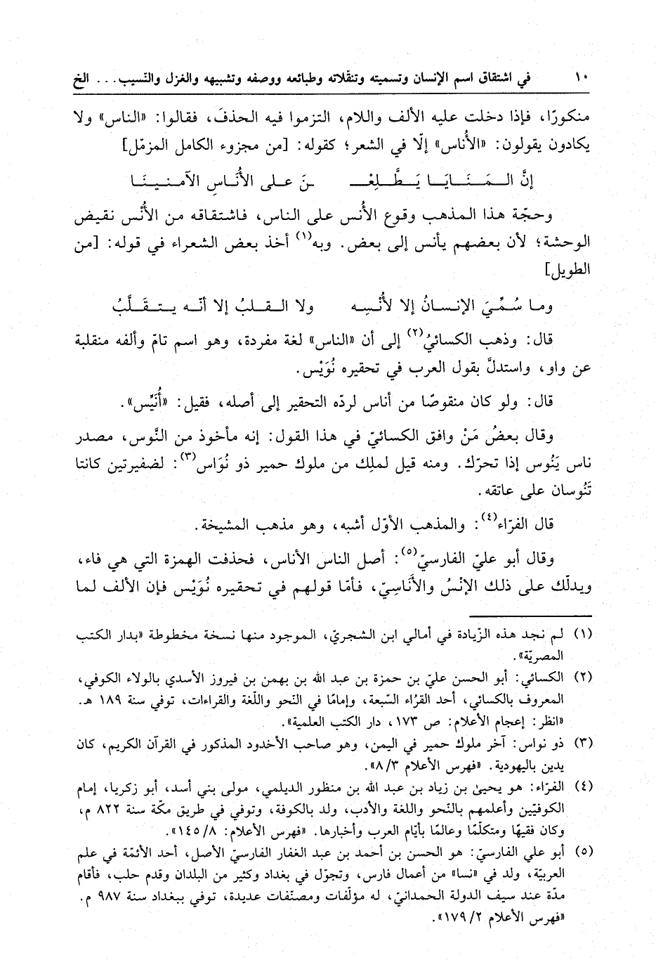 وقال أبو عليّ الفارسيّ : أصل الناس الأناس . فحذفت الهمزة التي هي فاء ويدلك على ذلك الإنْسُ والأناسيّ . فأما قولهم في تحقيره نُويس فإن الألف لما