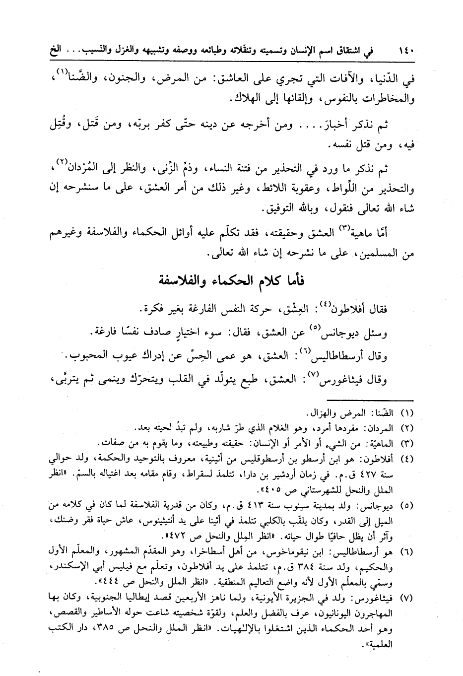 أمَّا ماهية العشق وحقيقته ، فقد تكلم عليه أوائل الحكماء والفلاسفة وغيرهم من المسلمين ، على ما نشرحه إن شاء الله تعالى .