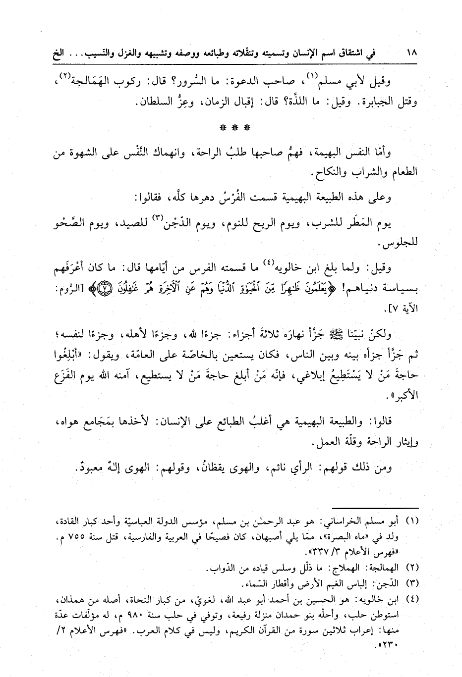 قالوا : والطبيعة البهيمية هي أغلب الطبائع على الإنسان : لأخذها بمجامع هواه ، وإيثار الراحة وقلة العمل .