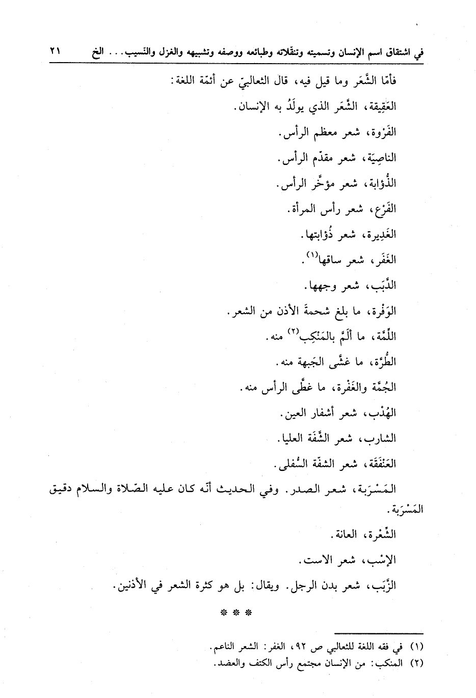 فأما الشَّعر وما قيل فيه قال الثعالبيّ عن أئمة اللغة : العقيقة ، الشعر الذي يولد به الإنسان .