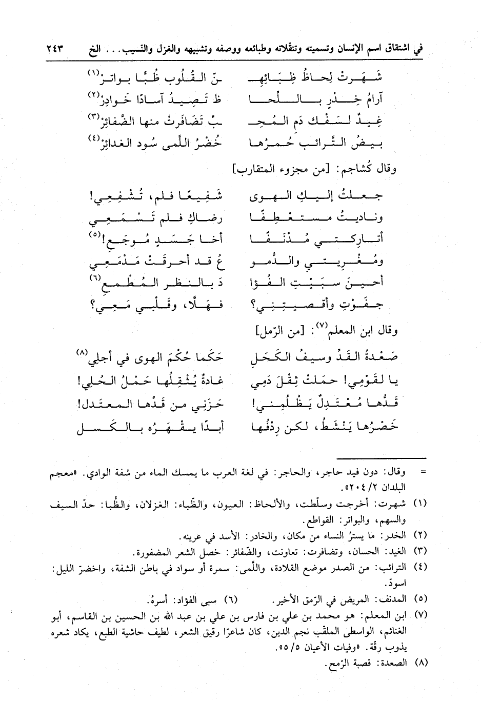 وقال ابن المعلم : صعدة القدِّ وسيف الكحل . . . حكما حكم الهوى في أجلي .