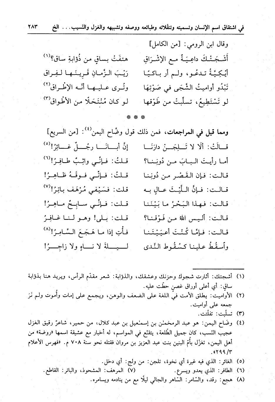 ومما قيل في المراجعات ، فمن ذلك قول وضَّاح اليمن :