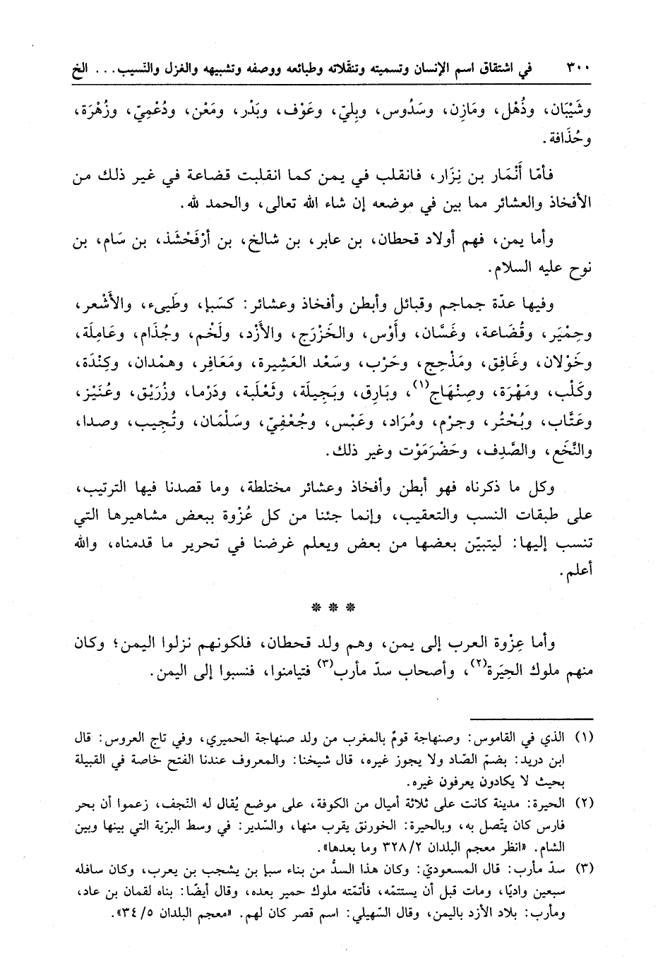 وكل ما ذكرناه فهو أبطن وأفخاذ وعشائر مختلطة ، وما قصدنا فيها الترتيب ، على طبقات النسب والتعقيب ، وإنما جئنا من كل عزوة ببعض مشاهيرها التي تنسب إليها : ليتبين بعضها من بعض ويعلم غرضنا في تحرير ما قدمناه والله أعلم .