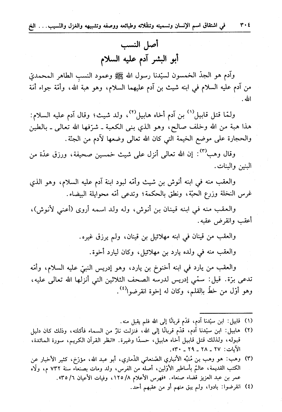 وإدم هو الجدّ الخمسون لسيدنا رسول الله ( صلى الله عليه وسلم ) وعمود النسب الطاهر المحمديّ من آدم عليه السلام في ابنه شيث بن آدم عليهما السلام : وهو هبة الله ، وأمّه حواء أمة الله .