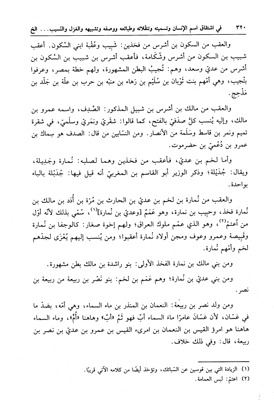 ومن بني عديّ بن نمارة ؛ وهم عمم بن لخم : بنو نصر بن ربيعة من ربيعة بن نصر .