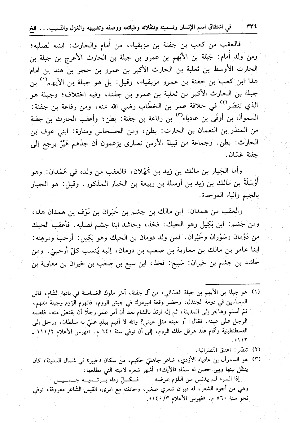 فالعقب من كعب بن جفنة بن مزيقياء ، من أُمام والحارث : ابنيه لصلبه ؛ ومن ولد أُمام : جبلة بن الأيهم بن عمرو بن جبلة بن الحارث الأعرج بن جبلة بن الحارث الأوسط بن ثعلبة بن الحارث الأكبر بن عمرو بن حجر بن هند بن أمام هذا بن كعب بن جفنة بن عمرو مزيقياء . وقيل : بل هو جبلة بن الأيهم بن جبلة بن الحارث الأكبر بن ثعلبة بن عمرو بن جفنة ، وفيه اختلاف ؛ وجبلة هو الذي تنصر في خلافة عمر بن الخطاب رضي الله عنه ، ومن رفاعة بن جفنة : السموءل بن أوفى بن عادياء بن رفاعة بن جفنة : بطن ؛ وأعقب الحارث بن جفنة من المنذر بن النعمان بن الحارث : بطن ، ومن الحسحاس ومنارة : ابني عوف بن الحارث : بطن . وجماعة من قبيلة الأرمن نصارى يزعمون أن جدّهم هيِّزٌ يرجع إلى جفنة غسّان . وأما الخيار بن مالك بن زيد بن كهلان ، فالعقب من ولده في همدان : وهو أوسلة بن مالك بن زيد بن أوسلة بن ربيعة بن الخيار المذكور . وقيل : هو الجبار بالجيم والباء الموحدة .