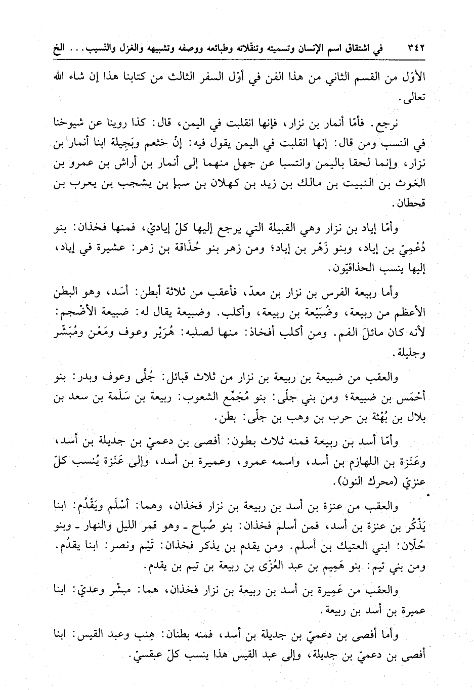 نرجع . فأما أنمار بن نزار فإنها انقلبت في اليمن ، قال : كذا روينا عن شيوخنا في النسب ومن قال : إنها انقلبت في اليمن يقول فيه : إنّ خثعم وبجيلة ابنا أنمار بن نزار ، وإنما لحقا باليمن وانتسبا عن جهل منهما إلى أنمار بن أراش بن عمرو بن الغوث بن النبيت بن مالك بن زيد بن كهلان بن سبأ بن يشجب بن يعرب بن قحطان .